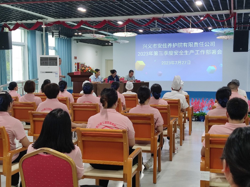 根据万峰工贸召开2023年上半年安全生产工作总结会暨下半年安全生产工作部署会精神及常态化开展安全生产工作要求,2023年7月27日召开兴义市安佳养护院有限责任公司第三季度安全生产工作部署会,公司副总经理陈盼盼、安佳坪东颐养园院长杜见伟、副院长田付林出席会议,全体职工参会。会上,陈盼盼同志组织观看安全生产警示教育...
