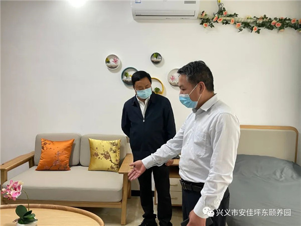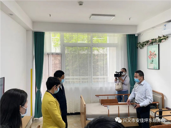 兴义市安佳养护院有限公司潘国富总经理、项目负责人杜见伟向刘兴吉副主任及陪同领导详细介绍了我园在推进落实《贵州省养老服务条例》过程中取得的成果、面临的问题以及未来的规划。州人大常委会检查组对我园工作给予充分的肯定,对相关工作给予具体的建议,并高度赞扬了我园医养融合的智慧养老模式,要求我园区在新冠疫情环境下继续坚持做好内部管理,并热情鼓励我们走出机构、融入社区、服务居家,将优质的服务带给更多的老人及其家庭,加快推进地方养老行业的发展。州、市两级人大、医保、卫健、民政及坪东街道办领导等随同检查。
