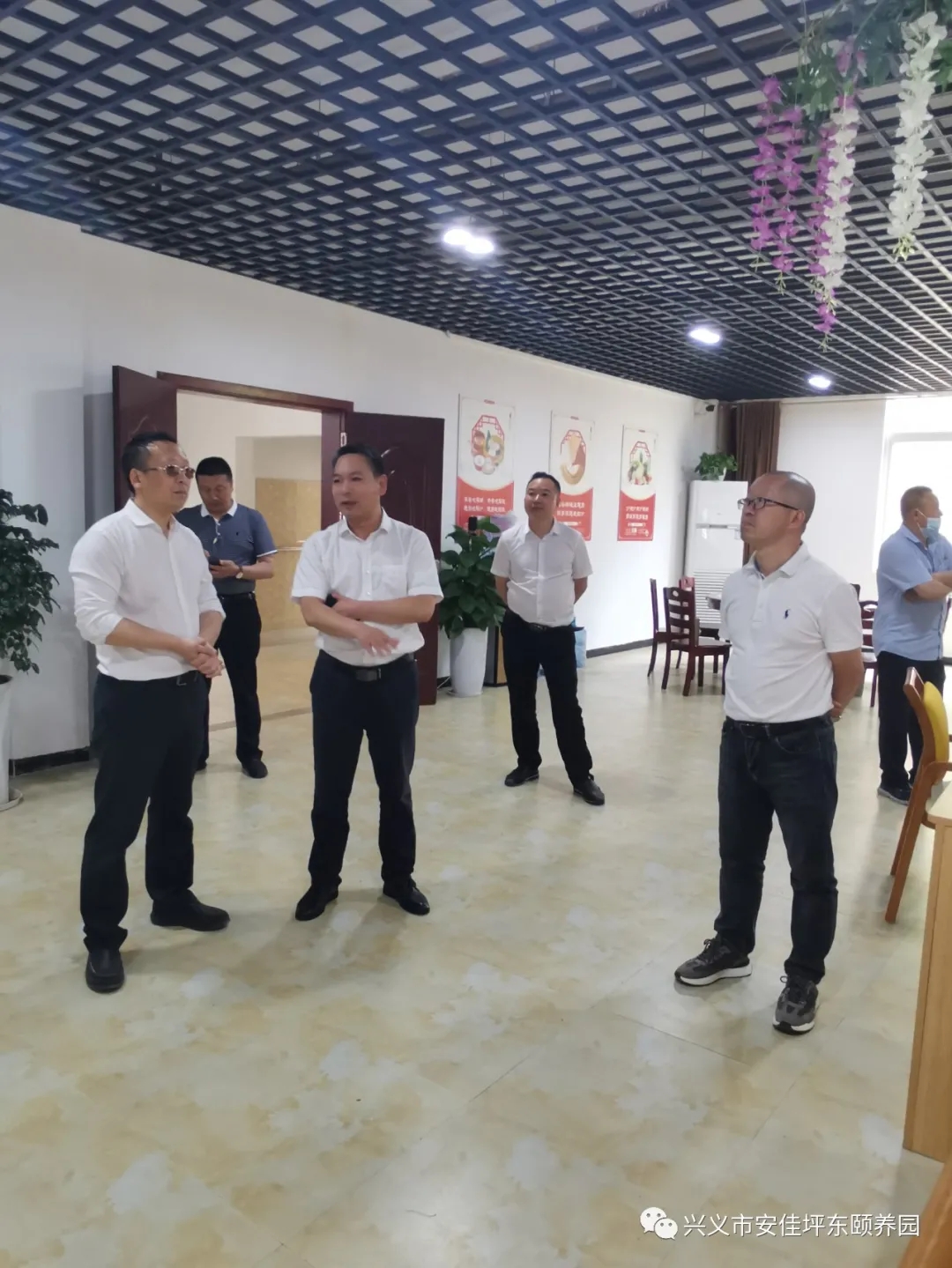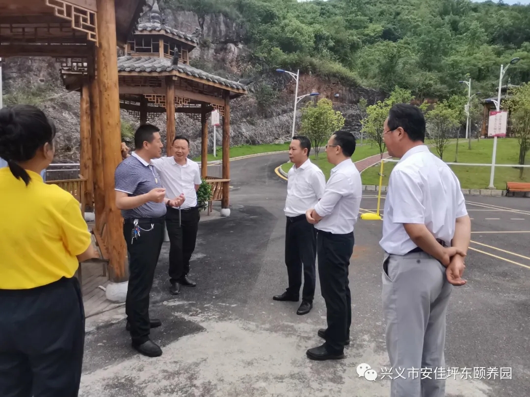 6月4日,州投促局领导及重发优侍科技康养产业(重庆)有限公司董事杨中鑫一行到我园参观考察,颐养园杜总、王院长陪同参观。