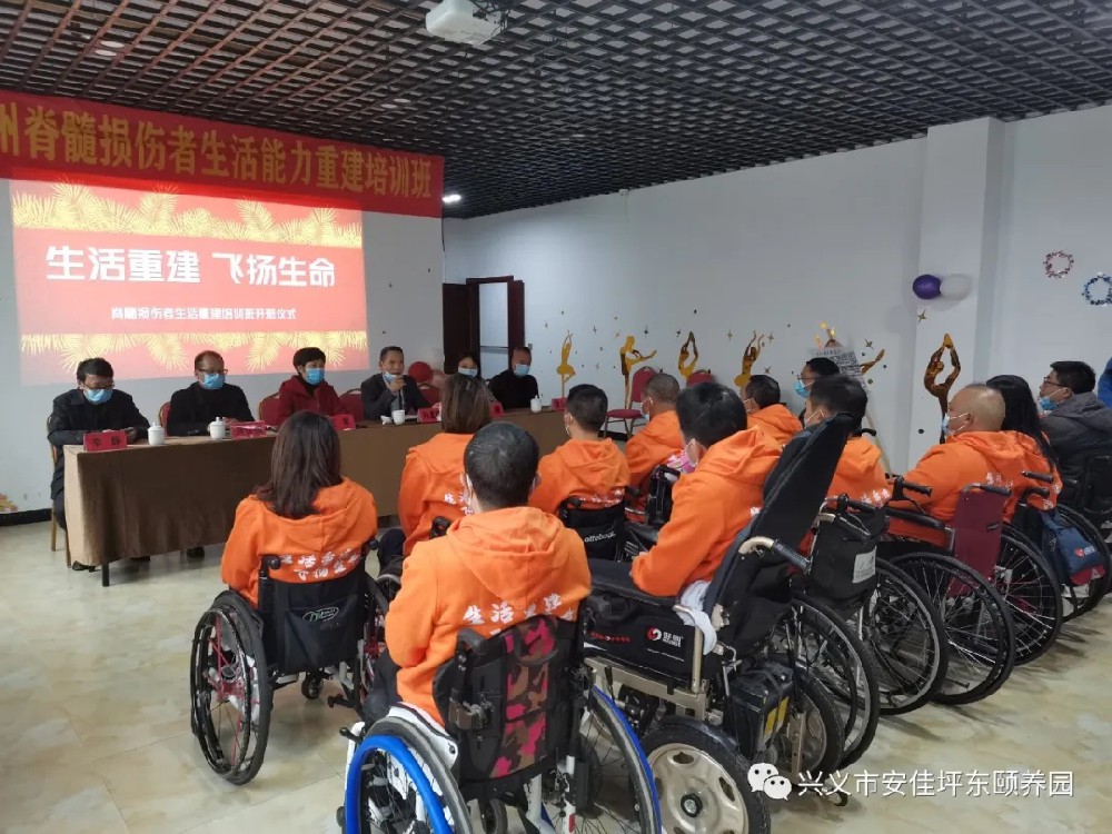 • 11月19日下午3点钟,由兴义市残联和安佳坪东颐养园联合举办的,以“生活重建、飞扬生命”为主题的脊髓损伤者生活重建培训班在我园正式开班,黔西南州残联党组成员王琴理事长以及兴义市残联有关领导参加了开班仪式。 本届培训班为期10天,共有来自望谟、木贾、安龙、义龙新区等地区...